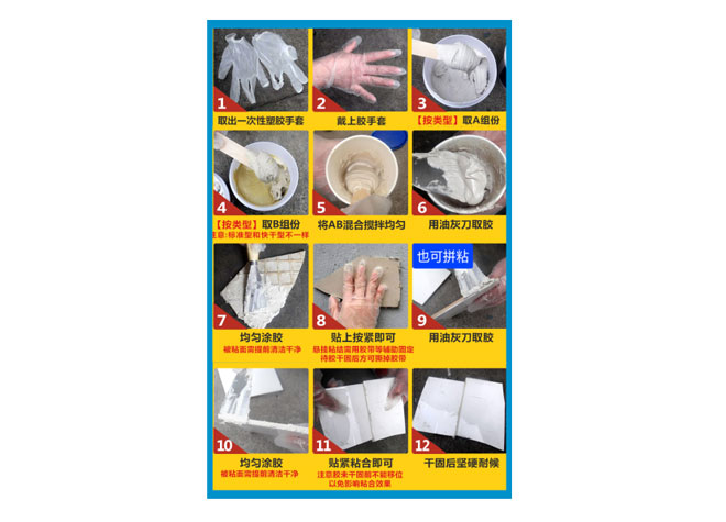 ● 超過施工有效時(shí)間的粘合物不得再作移動(dòng),如需移動(dòng),則要重新調(diào)膠粘貼。